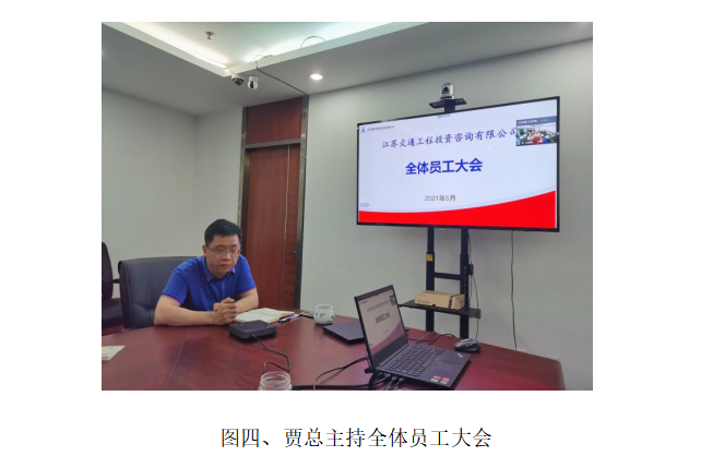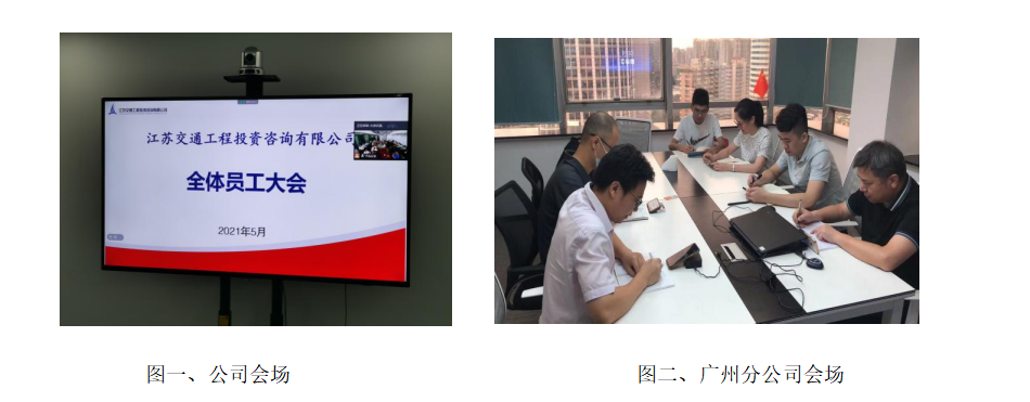 2021年5月29日,公司在南京召開公司全體員工大會。因疫情防控需要,公司中層以上干部在公司會議室參會,其余員工和各分公司以視頻會議形式參會。