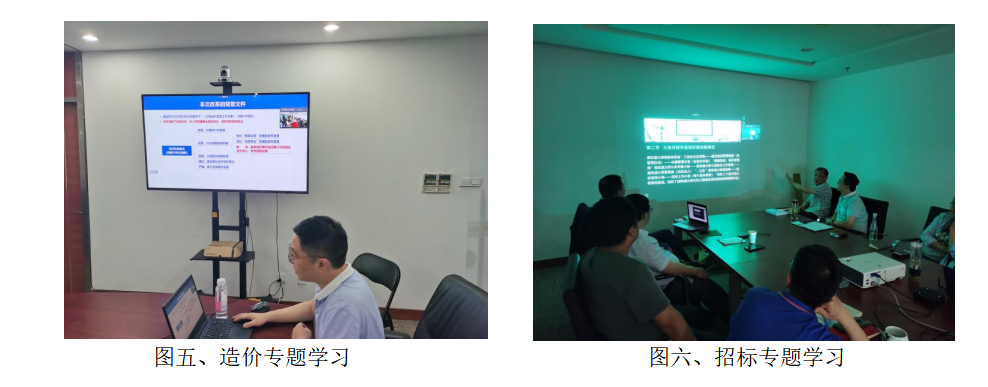 第三項議程為組織了造價咨詢和招標(biāo)代理的專項學(xué)習(xí),分別以公司深度參與的兩個項目《江蘇省工程造價市場化改革》和《港珠澳大橋招標(biāo)策劃與實例分析》為專題,進行了學(xué)習(xí)和探討,各主講人以理論結(jié)合實際,對照我們的實際工作,深入淺出的闡述了以上兩個專題,同時大家也各抒己見,進行了熱烈討論,最后賈總和孫總各自對專題學(xué)習(xí)進行了總結(jié)。